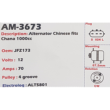 Alternator Chana 1000CC 1.0L 12V 70A JL465Q