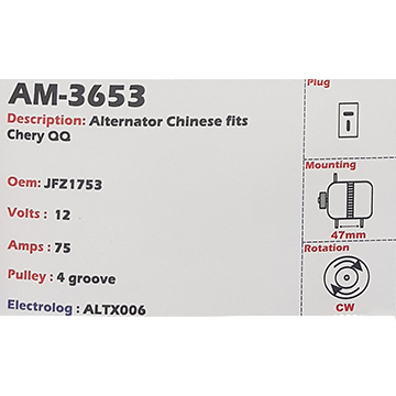 Alternator Chrysler 3.3L - 3.8L V6 (6-cylinder) 12V 160A - AM-3361