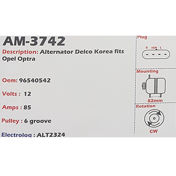 Alternator Chevrolet Aveo AD221 12V 85A