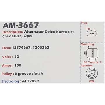 Alternator Chrysler 3.3L - 3.8L V6 (6-cylinder) 12V 160A - AM-3361