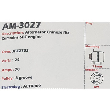 Alternator Cummins (6BT-ENGINE) 24V 70A