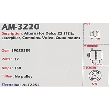 Alternator Cummins / Caterpillar / Freightliner / International / Mack / Volvo / Western Star 12V 150A 22SI