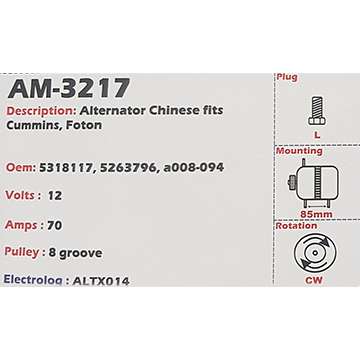 Alternator Forklift Bobcat 12V 35A - AM-3203