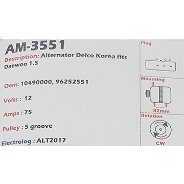 Alternator Daewoo 1.5L CS121D 12V 75A
