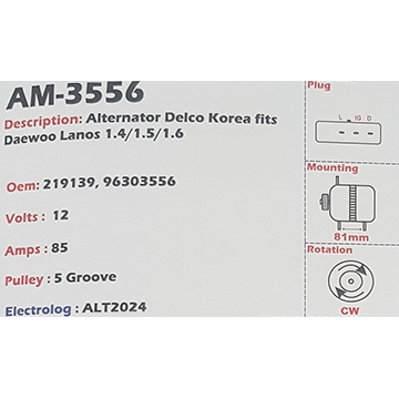 Alternator Daewoo Lanos 1.4L - 1.5L - 1.6L CS121D 12V 85A