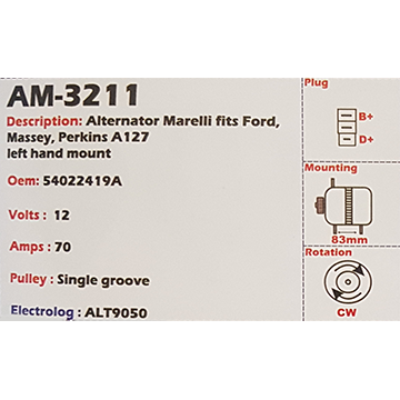 Alternator Forklift Bobcat 12V 35A - AM-3203