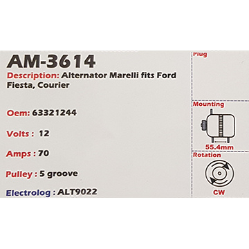 Alternator Ford Fiesta - Courier - Escort 12V 70A - AM-3614