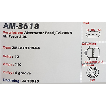 Alternator Ford Focus 2.0L 12V 110A 6G