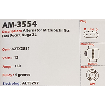 Alternator Ford Focus - Kuga 2.0L 12V 150A A2TX