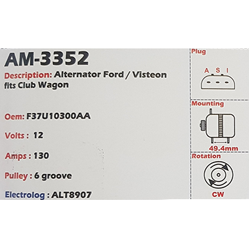 Alternator Chrysler 3.3L - 3.8L V6 (6-cylinder) 12V 160A - AM-3361