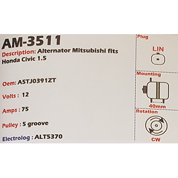 Alternator Mitsubishi Outlander 12V 110A A3TG - AM-3504
