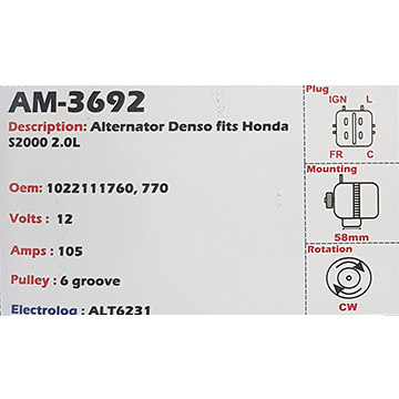 Alternator Honda S2000 2.0L 12V 105A