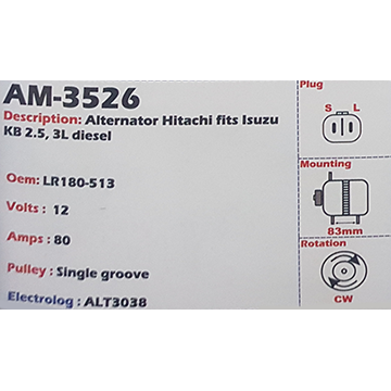 Alternator Isuzu 2.5L - 3.0L Diesel 12V 80A