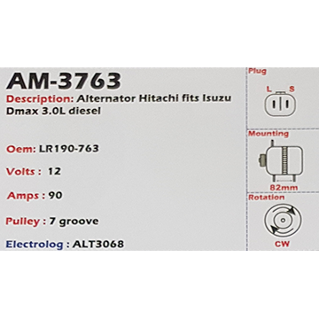 Alternator Chrysler 3.3L - 3.8L V6 (6-cylinder) 12V 160A - AM-3361