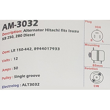 Alternator Isuzu KB250 - KB280 Diesel 12V 50A