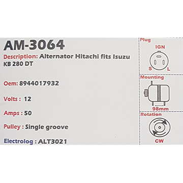Alternator Isuzu KB280DT TURBO 12V 50A