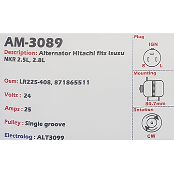Alternator Isuzu NKR 2.5L - 2.8L 24V 25A
