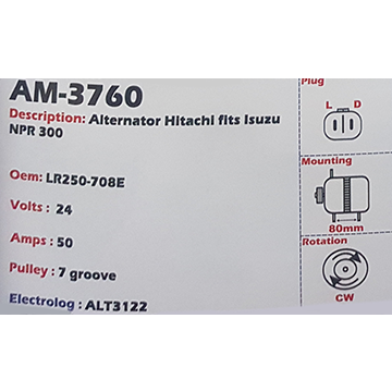 Alternator Forklift Bobcat 12V 35A - AM-3203
