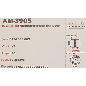 Alternator Iveco 24V 70A NCB1 - AM-3905