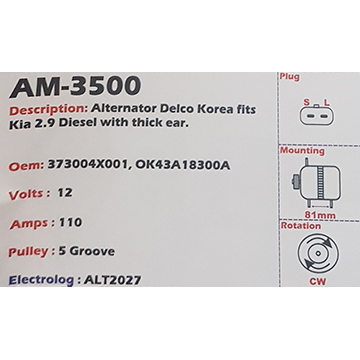 Alternator Forklift Bobcat 12V 35A - AM-3203