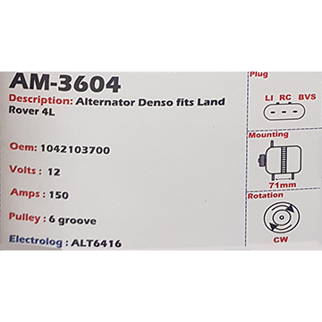 Alternator Land Rover Discovery III 4.0L V6 12V 150A