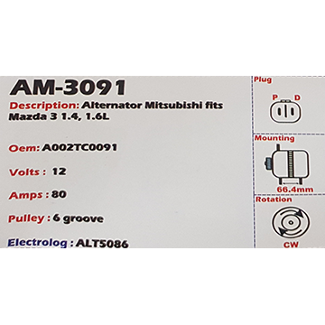 Alternator Mitsubishi Outlander 12V 110A A3TG - AM-3504