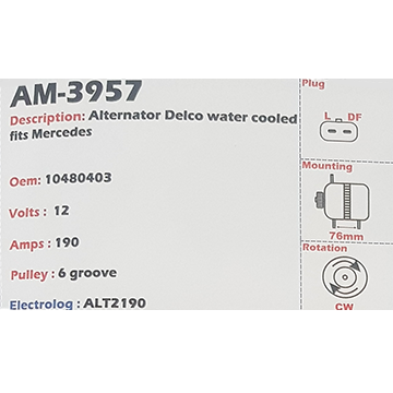 Alternator Chrysler 3.3L - 3.8L V6 (6-cylinder) 12V 160A - AM-3361