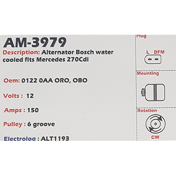 Alternator Chrysler 3.3L - 3.8L V6 (6-cylinder) 12V 160A - AM-3361