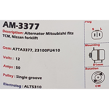 Alternator Forklift Bobcat 12V 35A - AM-3203