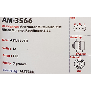 Alternator Nissan Murano - Pathfinder 3.5L 12V 130A A3TJ