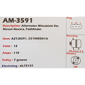 Alternator Mitsubishi Outlander 12V 110A A3TG - AM-3504