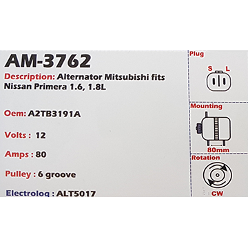 Alternator Mitsubishi Outlander 12V 110A A3TG - AM-3504