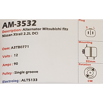 Alternator Mitsubishi Outlander 12V 110A A3TG - AM-3504