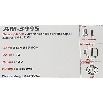 Alternator Opel Astra / Zafira 12V 120A NCB1