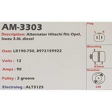 Alternator Opel / Isuzu 3.0L Diesel 12V 90A