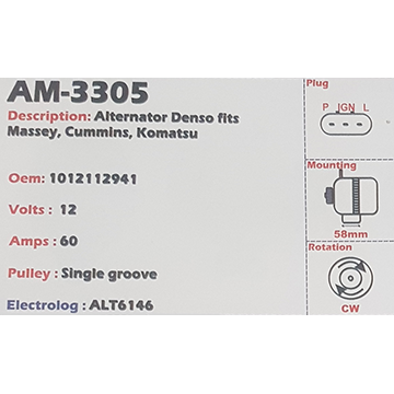 Alternator Forklift Bobcat 12V 35A - AM-3203