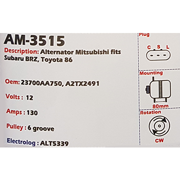 Alternator Mitsubishi Outlander 12V 110A A3TG - AM-3504