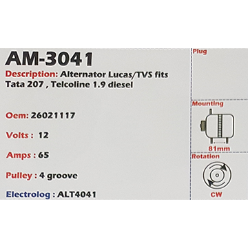 Alternator Tata 207 Telcoline 1.9L Diesel 12V 65A 3SA23