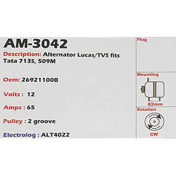 Alternator Chrysler 3.3L - 3.8L V6 (6-cylinder) 12V 160A - AM-3361