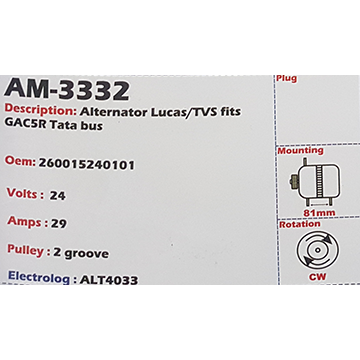 Alternator Chrysler 3.3L - 3.8L V6 (6-cylinder) 12V 160A - AM-3361