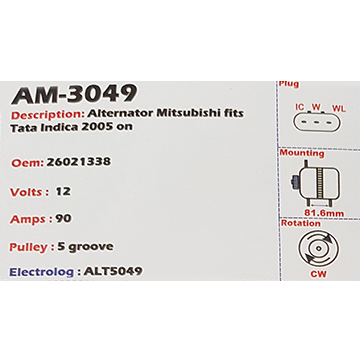 Alternator Mitsubishi Outlander 12V 110A A3TG - AM-3504