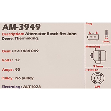 Alternator Forklift Bobcat 12V 35A - AM-3203