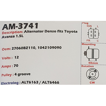 Alternator Suzuki Ignis - JIimny - Swift 1.3L - 1.5L - 1.6L 12V 70A - AM-3600