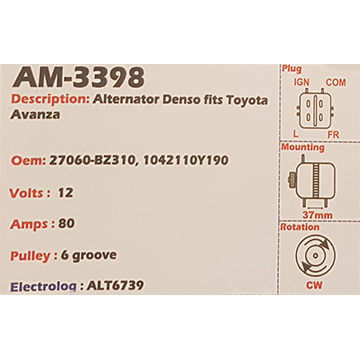 Alternator Suzuki Ignis - JIimny - Swift 1.3L - 1.5L - 1.6L 12V 70A - AM-3600