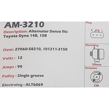 Alternator Toyota Dyna 14B - 15B 12V 90A