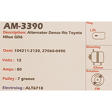 Alternator Toyota / Lexus 4.0L 12V 100A - AM-3380