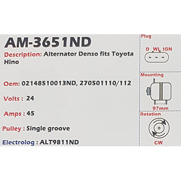 Alternator Suzuki Ignis - JIimny - Swift 1.3L - 1.5L - 1.6L 12V 70A - AM-3600
