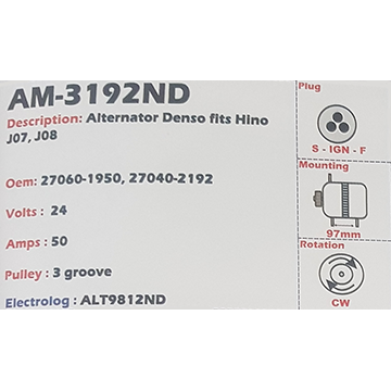 Alternator Chrysler 3.3L - 3.8L V6 (6-cylinder) 12V 160A - AM-3361