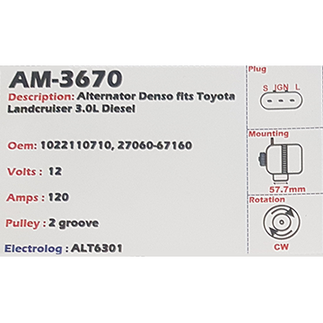 Alternator Toyota / Lexus 4.0L 12V 100A - AM-3380