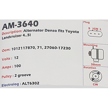 Alternator Toyota / Lexus 4.0L 12V 100A - AM-3380